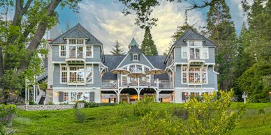 Custom Tudor style lakefront home with attention to every detail, located inside the gates of Rainbow Point with expansive views.